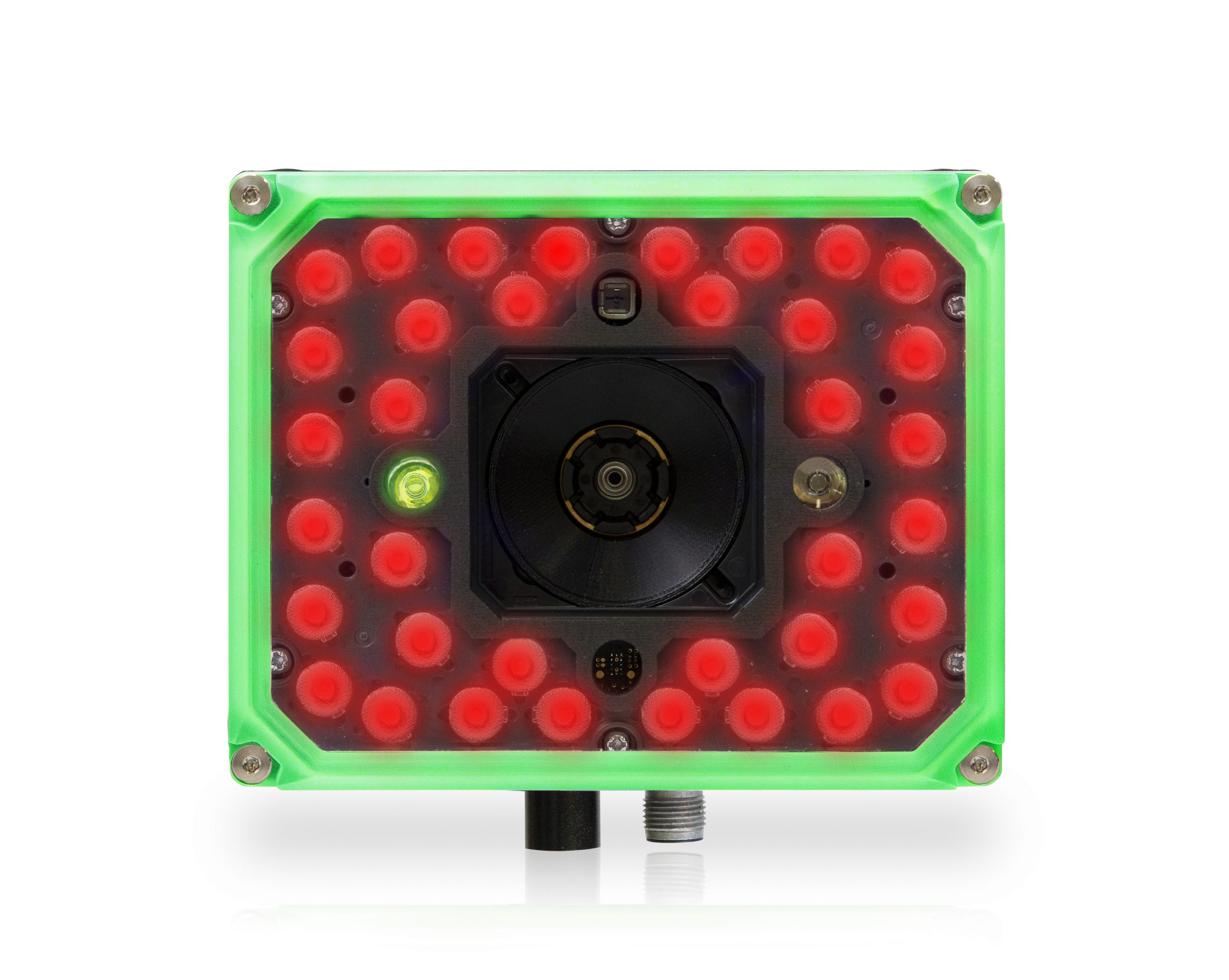 Der extrem leistungsstarke 2MP-Sensor (1920 × 1080 Pixel, 16:9) erzeugt ein extra großes Sichtfeld (Field of View, FOV) auf der horizontalen Achse, dass durchaus mit 3 mega-Pixel-Lesegeräten konkurriert. Dieses in Verbindung mit intelligenter konfigurierbaren Beleuchtungen mit 3 Farboptionen Garantiert eine hervorragende Leseleistung bei Etiketten und Direct Part Marking (DPM)
